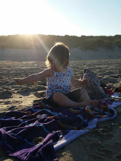 We spent this past week in the Outer Banks. Our first true family vacation. We had all the gear and were ready to spend our days splashing in our private pool and putting our feet in the ocean - that was, I was ready. Lucy had other plans. Day one, I strapped her floaty on, and we slowly made our way into the pool, but once the water hit her chest, she adamantly said, "No want it." Not much changed in the following days. My girl was content to sit at the rim of the pool, and splash the water with her feet - but that was as far as she went. She preferred the make-shift beach Big Red created for her with buckets of sand at the pool's edge. I was sad and had to revise my visions of us splashing in the pool for hours on end. It was a good check yourself moment. She is so much of Big Red and me, but this kid is definitely her own person. Last week was not the week for pool time. I suspect someday down the line she'll learn to enjoy splashing in a pool, but this vacation was not it. I have always loved the water, gravitated to it like a fish. My daughter will take a different approach, a more cautious one, and I have had to learn, quickly, to respect her wishes.